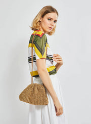Small women's clutch in raffia, made entirely by hand with the crochet technique. This new, smaller version of the Maria La Rosa icon bag is roomy enough to carry the essentials with you. It is equipped with a tone on tone chain.