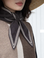 This dark brown scarf with a white stripe offers a rich, sophisticated look. Lightweight, compact, and travel-friendly, it’s the perfect companion for any adventure. The spindle shape allows for versatile styling, making it ideal for a polished French knot or a more casual, effortless drape.