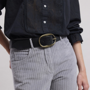 Iconic women's belt in leather with oval buckle.