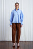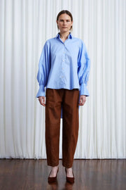 Our comfort found shirt is exactly that, an oversized yet sculptural shirt that tapers from the body to the sleeve creating a dramatic silhouette that is finished with a gathering detail across the yoke before cascading down the back. Tuck the front in for a clean dramatic look or wear it out for a more artistic flair.