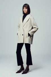 Modern and light twist to a classic peacoat. Button fastenings, double breasted front, softly draped sleeves. Round lapel for a unique look