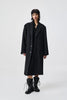 Men’s oversized over coat hidden single buttoned with double flap pocket on one side featuring a raw sleeve and bottom edge_