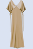 Low v-neck dress with cape effect in fluid gold.