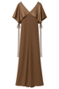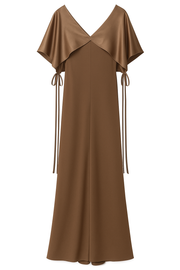 Low v-neck dress with cape effect in fluid truffle.