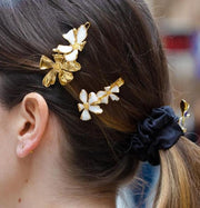 Hair clip with two flowers covered in white resin and gilded with fine gold.
