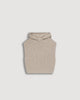 Sleeveless women's rib-knit sweater with hood. Drop armholes. Ribbing on shoulders.