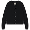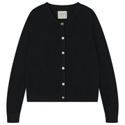 Black cashmere crew neck cardigan with 'distressed' ribs.