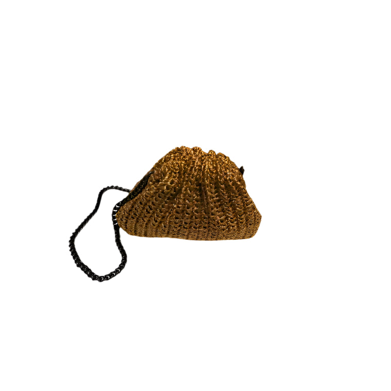 Small women's clutch in raffia, made entirely by hand with the crochet technique. This new, smaller version of the Maria La Rosa icon bag is roomy enough to carry the essentials with you. It is equipped with a tone on tone chain.