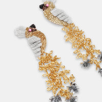 Light as a feather! Make a statement with these hand beaded bird earrings.