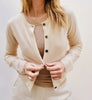 This waist length crew neck classic cardi features hidden buttons and inset shoulders for a sophisticated look.