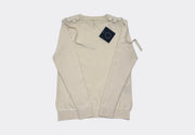 Antique military jackets are a constant source of inspiration for formal decoration, with their ribbon braiding and embroidery. The Hendrix sweater is inspired by the Royal Hussar military jacket worn by Jimi Hendrix. Looping and interlacing skinny grosgrain ribbon creates an intricate shoulder detail, with a loose ribbon tail on either side just long enough to catch the wind, but short enough to sit under a jacket or coat. Grosgrain is a particular favourite for its textural tonal interest, elevating and enhancing the colour of cashmere, while loose ribbons lend a little movement and magic. Side splits make this neat style easy to pair with a high waisted voluminous skirt or trouser. An otherwise easy round neck, the Hendrix sweater is elegant with a rockstar edge.