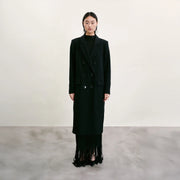 Black Herringbone Tweed-a deepest, most saturated shade of Black. Precision-tailored with sharp shoulders and a refined collar and lapel, the coat falls into a fluid, mid-length silhouette measuring 116 cm.